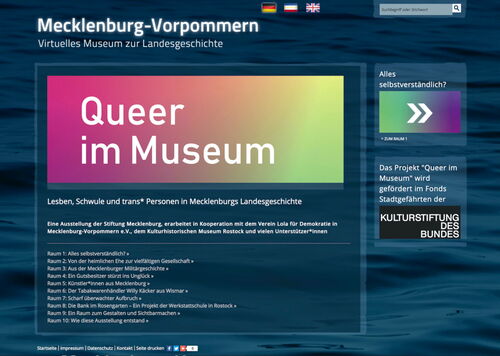 Die Stiftung Mecklenburg zeigt seit heute die Online-Ausstellung "Queer im Museum – Lesben, Schwule und trans* Personen in Mecklenburgs Landesgeschichte". Die Schau umfasst zehn digitale Räume im Virtuellen Landesmuseum Mecklenburg-Vorpommern.