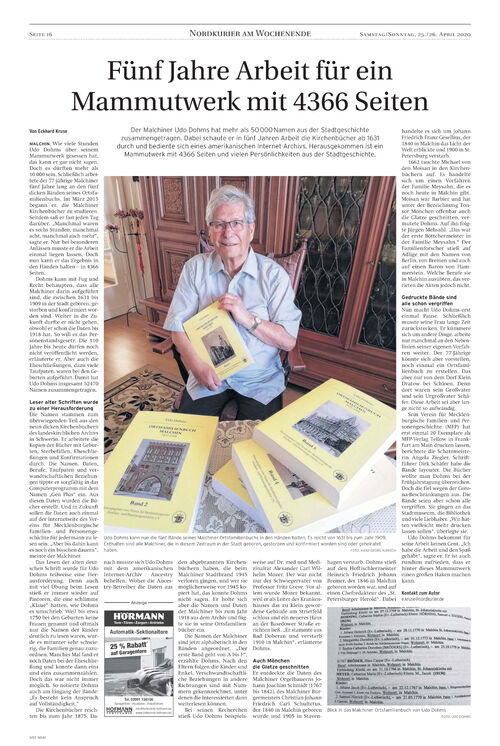 Im Nordkurier erschien heute ein ganzseitiger Artikel über das OFB Malchin.