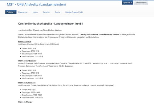 Als weiteres Ortsfamilienbuch konnte heute das von Sören Lindner erfasste Ortsfamilienbuch Altstrelitz - Landgemeinden I und II in unserem Datenraum veröffentlicht werden.