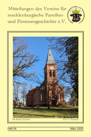 Für die Datenbank Forschungsergebnisse wurden uns von Klaus Metelmann aus Belgien umfangreiche Unterlagen mecklenburgischen Familie METELMANN und von Ennelin Reich zur Familiengenealogie KOSSEL zur Verfügung gestellt.
