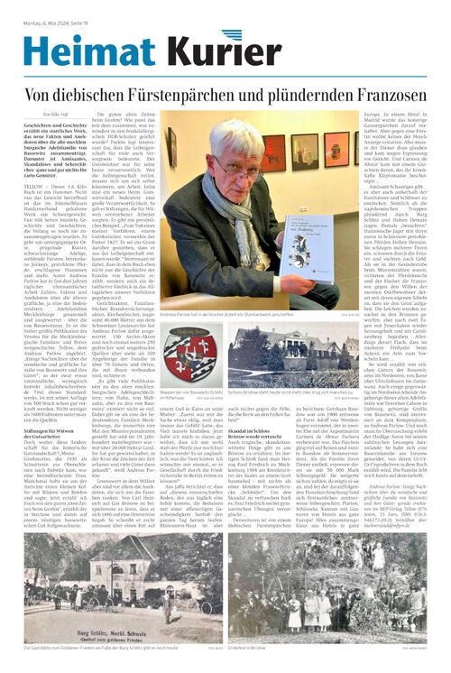 Der Heimat-Kurier berichtet heute ausführlich über das Buch "Einige Nachrichten über die wendische und gräfliche Familie von Bassewitz und ihre Güter" von Andreas Parlow.