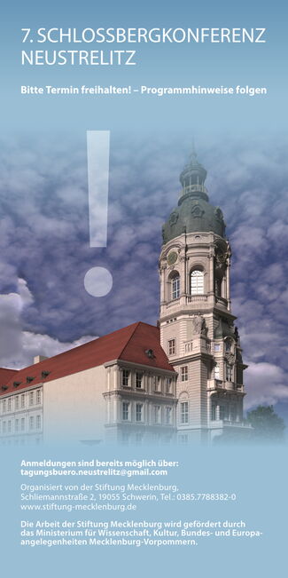 Anfang 2024 laden die Stiftung Mecklenburg und die Stadtvertretung Neustrelitz zum siebten Mal dazu ein, miteinander über die Zukunft des Neustrelitzer Schlossbergareals zu sprechen. Bitte reservieren Sie sich den Termin.