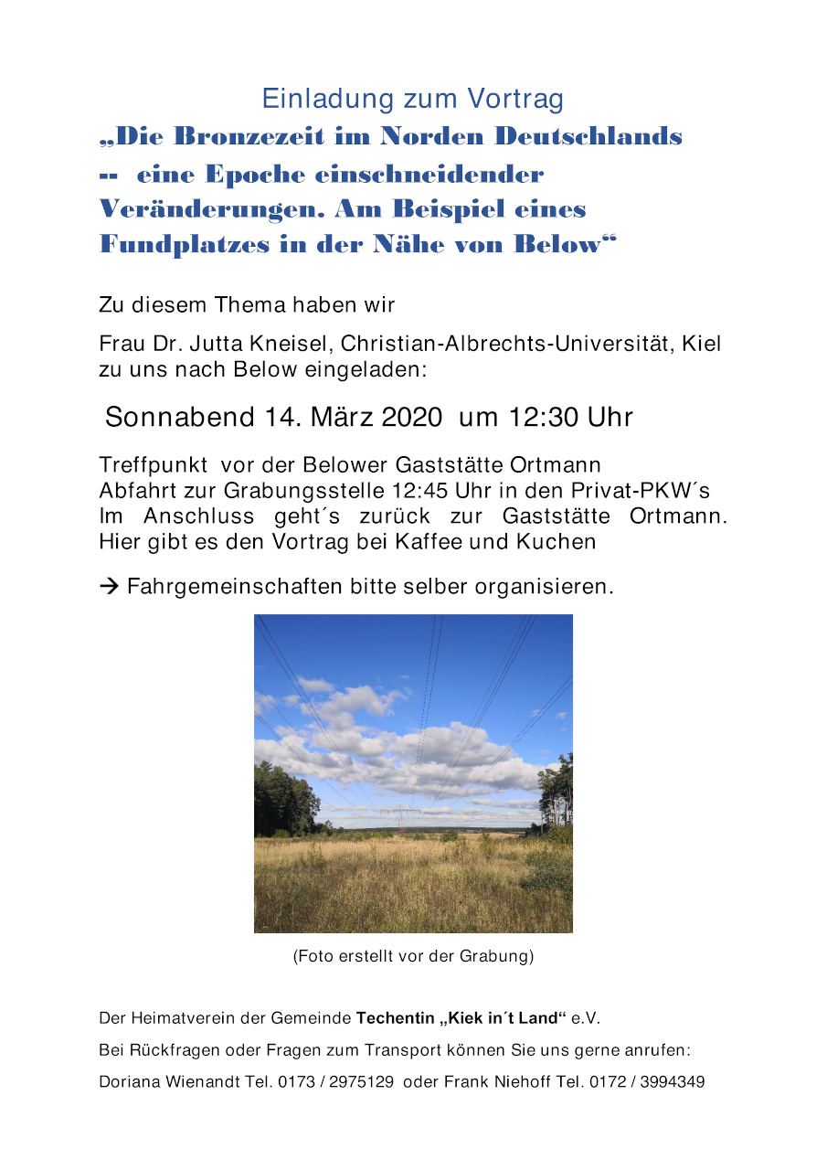 Wo: Treffpunkt vor der Belower Gaststätte Ortmann, Abfahrt zur Grabungsstelle 12:45 Uhr in Privat-PKW´s