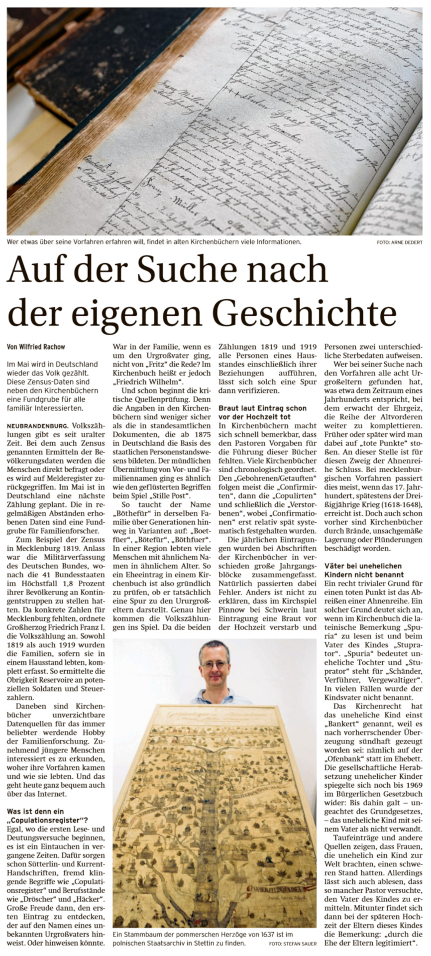Unser Mitglied Wilfried Rachow schreibt im Nordkurier über Volkszählungen in Mecklenburg und ihren Nutzen für familiär Interessierte.