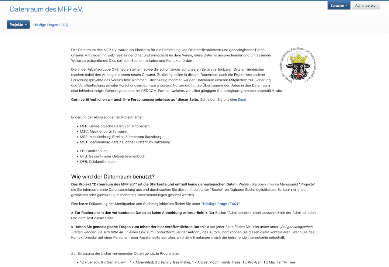 Wir bedanken uns bei Brigitte Mente für die Möglichkeit, ihre genealogischen Daten im Datenraum des MFP e.V. präsentieren zu können und wünschen allen Nutzern viel Erfolg bei der Recherche.