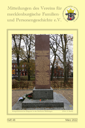 Das nächste Heft unserer Mitteilungen mit der Nr. 48 ist erschienen. Wieder mit vielen Bildern und auf dem Rücktitel eine historische Mecklenburger Karte aus dem Jahr 1932. Das Heft enthält auf sechsundfünfzig Seiten folgende Artikel: