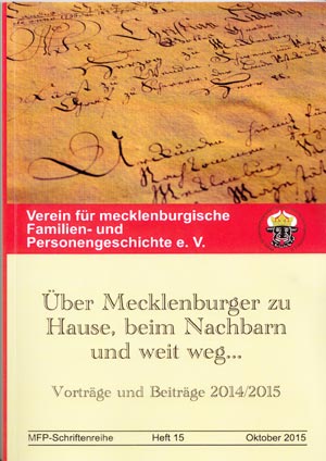 Und wieder ein Jubiläum: nach unseren Mitteilungen erschien auch das Heft 15 unserer Schriftenreihe in neuem Gewand. Unter dem Titel "Über Mecklenburger zu Hause, beim Nachbarn und weit weg ..." (Vorträge und Beiträge 2014/2015) wurden folgende Beiträge veröffentlicht: