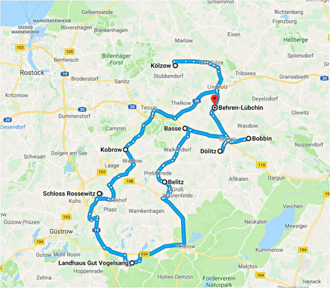 Wir besuchten die Gutshäuser in Kölzow, Behren-Lübchin, Bobbin, Dölitz, Belitz, Vogelsang, Rossewitz und Kobrow. Außerdem statteten wir den Kirchen in Kölzow und Basse einen Besuch ab. Auf unserer Reise trafen wir einige Bekannte, so Frau Dr. Halama und Rolf-Peter Bartz sowie die bekannten Gutshausretter Knut Spett-Henning und Roland an der Starre. Impressionen und kurze Berichte zu den besuchten Häusern haben wir in der vergangenen Woche auf unserer Facebook-Seite gepostet. Die Berichte haben zu einem regen Zuwachs unserer Abonnenten geführt und machen so langfristig Werbung für die Arbeit unseres Vereins. Wer die Tour noch einmal nachverfolgen möchte, schaue bitte hier: https://www.facebook.com/MFP.Tellow/. (Text: A. Adam)