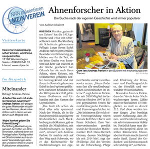 Unter dem Titel "Ahnenforscher in Aktion - Die Suche nach der eigenen Geschichte wird immer populärer" präsentierte die NNN in ihrer Wochenendausgabe vom 09./10.03.2019 unseren Verein im Gespräch mit dem 1. Vorsitzenden Andreas Parlow.