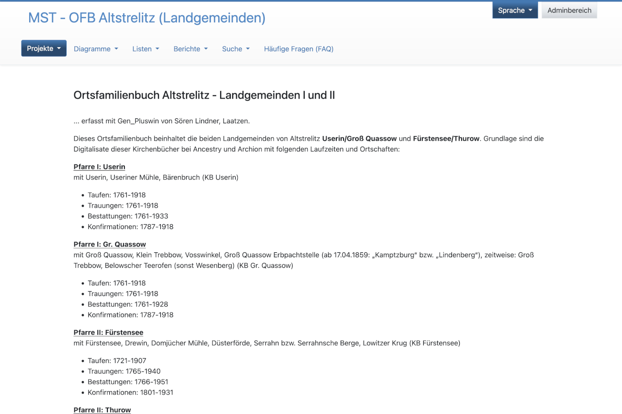 Heute konnten wir ein weiteres von Sören Lindner erfasstes Ortsfamilienbuch im Datenraum online stellen. Im OFB Altstrelitz - Landmeineden I und II sind die Daten zu 16511 Personen und 5354 Familien erfasst. Die erfassten Jahre sind im Datenraum für jede Gemeinde aufgeführt.