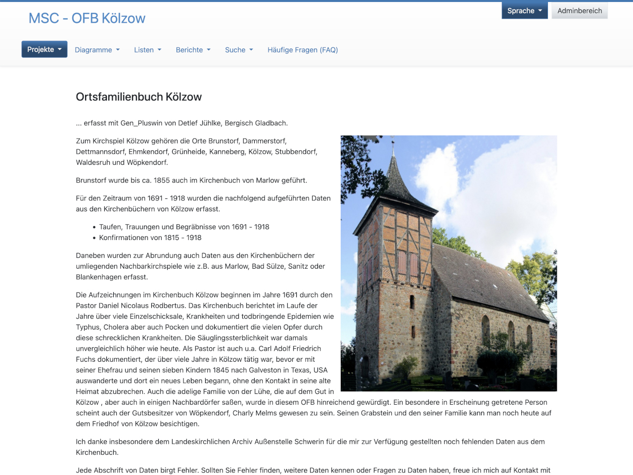 Heute konnten wir das von Detlef Jühlke erfasstes Ortsfamilienbuch Kölzow im Datenraum veröffentlichen. Im OFB Kölzow sind die Daten zu 18967 Personen und 4663 Familien für den Zeitraum 1691 - 1918 erfasst.
