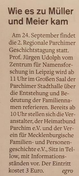 Am 23. September kündigt das "Mecklenburg Magazin" unsere Veranstaltung in Parchim an. Auch zur Veranstaltung erwarten wir Vertreter der Medien.