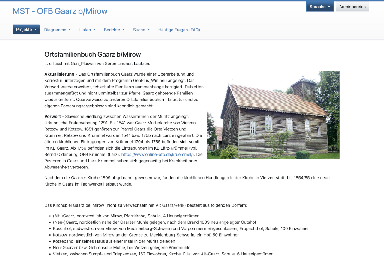 Das Ortsfamilienbuch Gaarz bei Mirow wurde durch unser Mitglied Sören Lindner einer Überarbeitung und Korrektur unterzogen und mit dem Programm Gen_Pluswin neu angelegt.